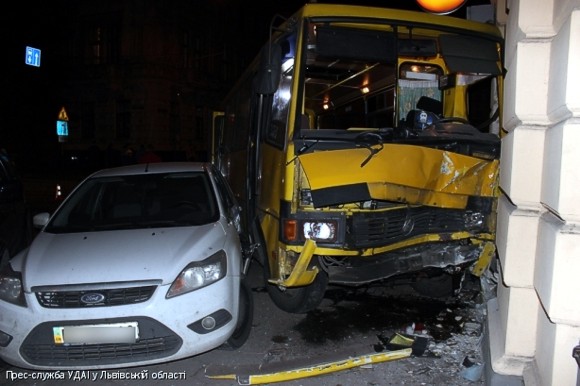 Как сообщает пресс-служба ГАИ Львовской области, водитель автомобиля Renault Traffic, 23-летний житель Львова, не выполнил требование дорожного знака «уступить дорогу» и столкнулся с маршрутным такси «Эталон», после чего микроавтобус сбил на тротуаре 19-летнюю девушку и влетел в припаркованный рядом автомобиль, а затем — в дом.