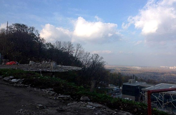 Как сообщалось ранее, депутат Киеврады от БЮТ Александр Бригинец заявлял, что строительство вертолетной площадки для президента Януковича, находящейся непосредственно под смотровой площадкой, нанесло непоправимый вред склонам Днепра. Так, обрезка корней деревьев, которые держали склон, только способствует оползням.