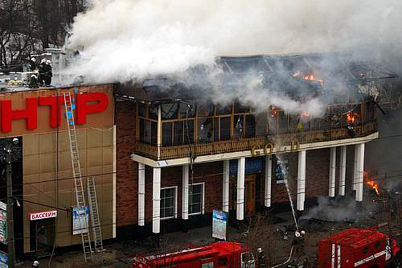 Сегодня утром, 16 февраля, начался пожар в донецком ночном клубе Вирус.