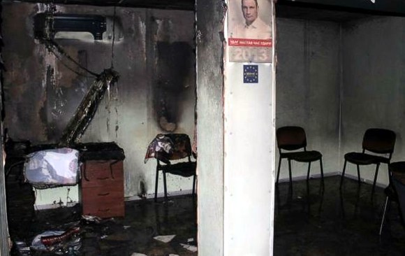 Как сообщили в пресс-службе «УДАРа», в Днепропетровске около 4 часов утра среды, 19 февраля, неизвестные бросили на первый этаж здания, в котором находится офис партии «УДАР», бутылки с зажигательной смесью. Помещение выгорело дотла.