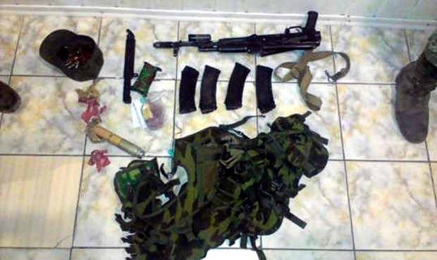 По данным ведомства, при себе мужчина имел автоматическое оружие (АКС) и был в разгрузочном жилете. Кроме того, во время осмотра у него изъяли 4 заполненных магазина, 2 пачки патронов, сигнальную мину и штык-нож.