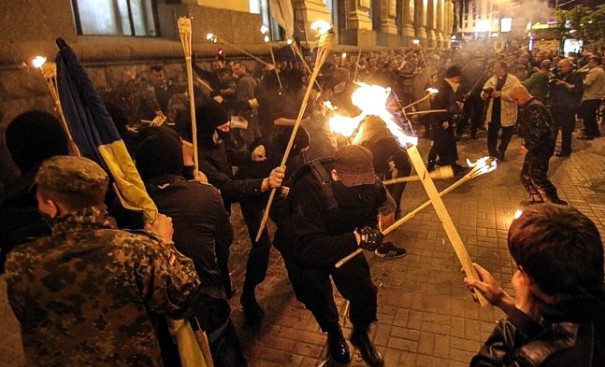 Напомним, вечером во вторник, 29 апреля, несколько десятков неизвестных в масках устроили «факельное шествие» якобы в честь Небесной сотни со стороны Бессарабки в направлении Майдана. При попытке пройти через баррикады в направлении улицы Институтской между участниками шествия и активистами самообороны Майдана возник конфликт, произошла потасовка. По словам очевидцев, в ходе драки в толпе использовали взрывпакеты, петарды, есть как минимум один пострадавший. У многих активистов в руках были биты, палки и арматура. Многие одеты в камуфляжную форму.