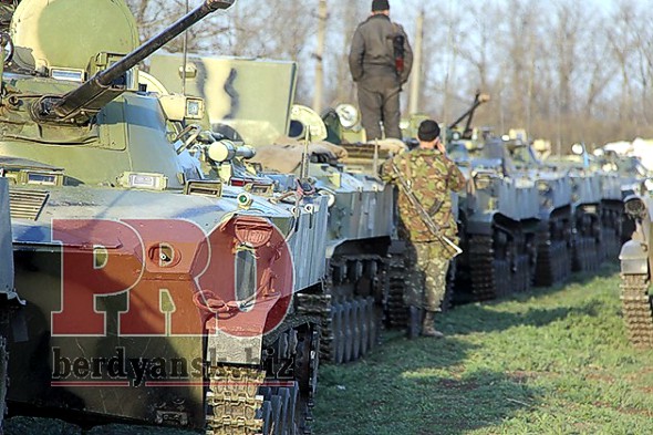 Как сообщает местное интернет-издание pro.berdyansk.biz, около 9:30 утра со стороны Нововасильевки в Бердянск зашла колонна из тяжелой техникой, в которой были замечены также легковые автомобили и грузовики с личным составом.