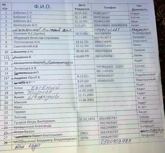 У задержанного выявлен список участников Бердянского пророссийского казачества, которые воюют в «ополчении» Славянска.