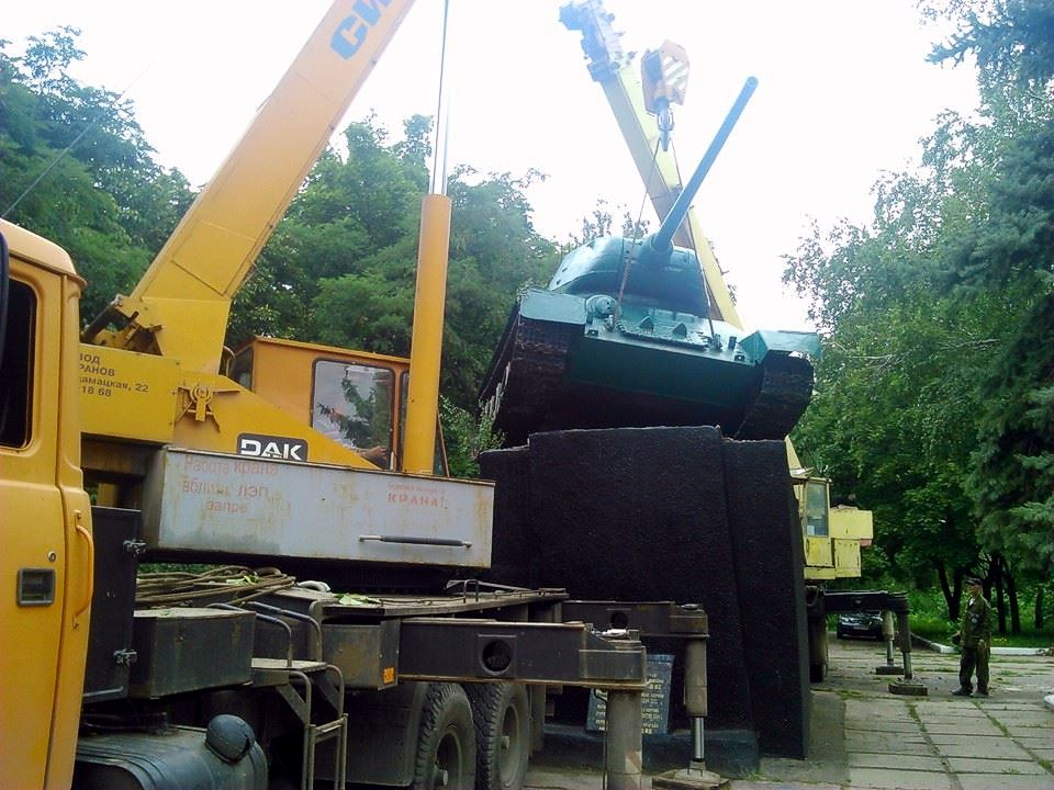 Танк был демонтирован при помощи кранов, погружен на автомобильный лафет и тягачем увезен из города и установлен на Алексеево-Дружковском блокпосту на выезде из Дружковки в сторону Константиновки.