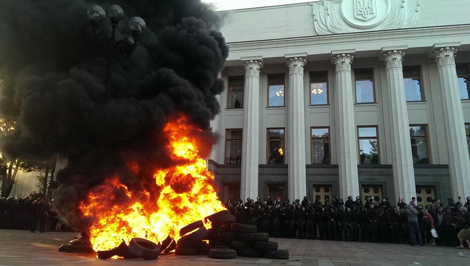 Тем временем активисты под зданием парламента зажгли шины и перекрыли движение по улице Грушевского.