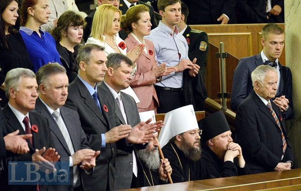 Предстоятель Украинской православной церкви Московского патриархата, митрополит Онуфрий не встал в парламенте Украины во время зачитывания имен бойцов АТО – Героев Украины, чтобы подчеркнуть необходимость немедленного прекращения огня.