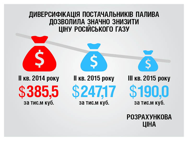 У країні на газовому ринку нема більше жодних посередників, які десятиліттями паразитували в цій сфері. Монополії та шантажу «Газпрому» покладено край! І хоча Стокгольмський арбітраж лише в 2016-му винесе рішення за нашим позовом до «Газпрому», ми вже значною мірою ліквідували негативні наслідки контракту 2009 року, коли ціна газу для України була в півтора-два рази вищою, ніж для Європи.