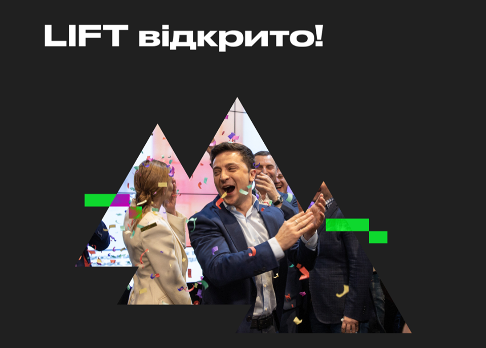 «Lift — это проект команды Зеленского, платформа, которая даст толчок для изменений в стране: привлечет новых людей на государственные и социальные проекты, инновационные идеи и разработки, которые сформируют государство как удобный сервис для каждого гражданина Украины», — сказано в описании проекта.