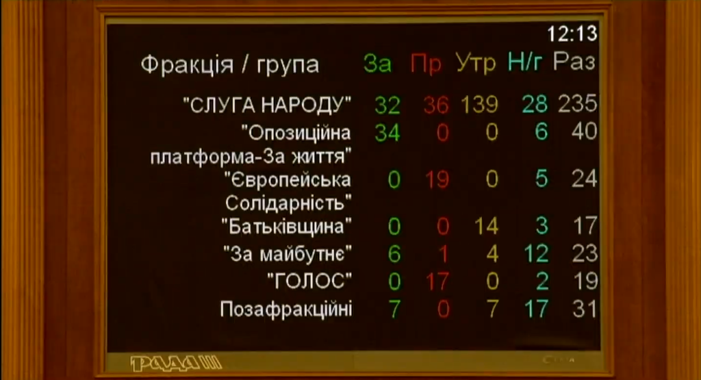 «За» проголосовали 79 нардепов, «против» — 73, воздержались — 164, не голосовали — 73.