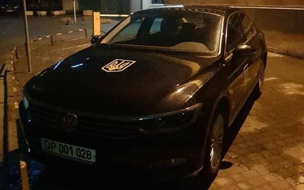 Кроме того, на дипломатических автомобилях россиян были наклеены украинские тризубцы.