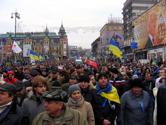 Протестующие заполнили центральную площадь Киева — Майдан Независимости и большую часть Крещатика. По разным оценкам на улицы вышли от 300 до 500 тысяч человек.