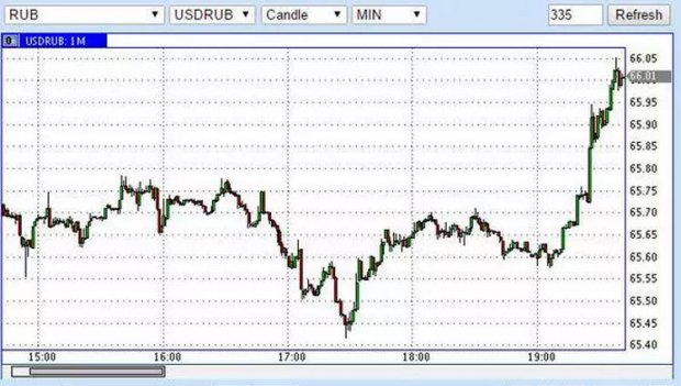 В начале речи российского президента в ООН доллар США стоил 65,60 рублей, однако уже через полчаса рубль обвалился почти на 30 копеек.