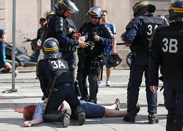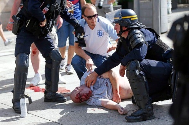Напомним, 11 июня после матча Россия–Англия около 30 российских болельщиков, прорвав оцепление стюардов, побежали в сектор английских фанов, избивая всех, кто попадался им на пути, в том числе, и французов.