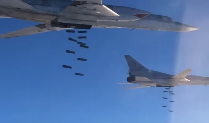 Российские бомбардировщики Ту-22м3 бомбят Сирию.