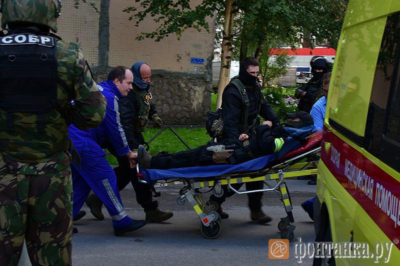 В 13:04 в «скорую» занесли человека в маске, в форме спецназа, после чего врачи его увезли, пишет «Фонтанка».