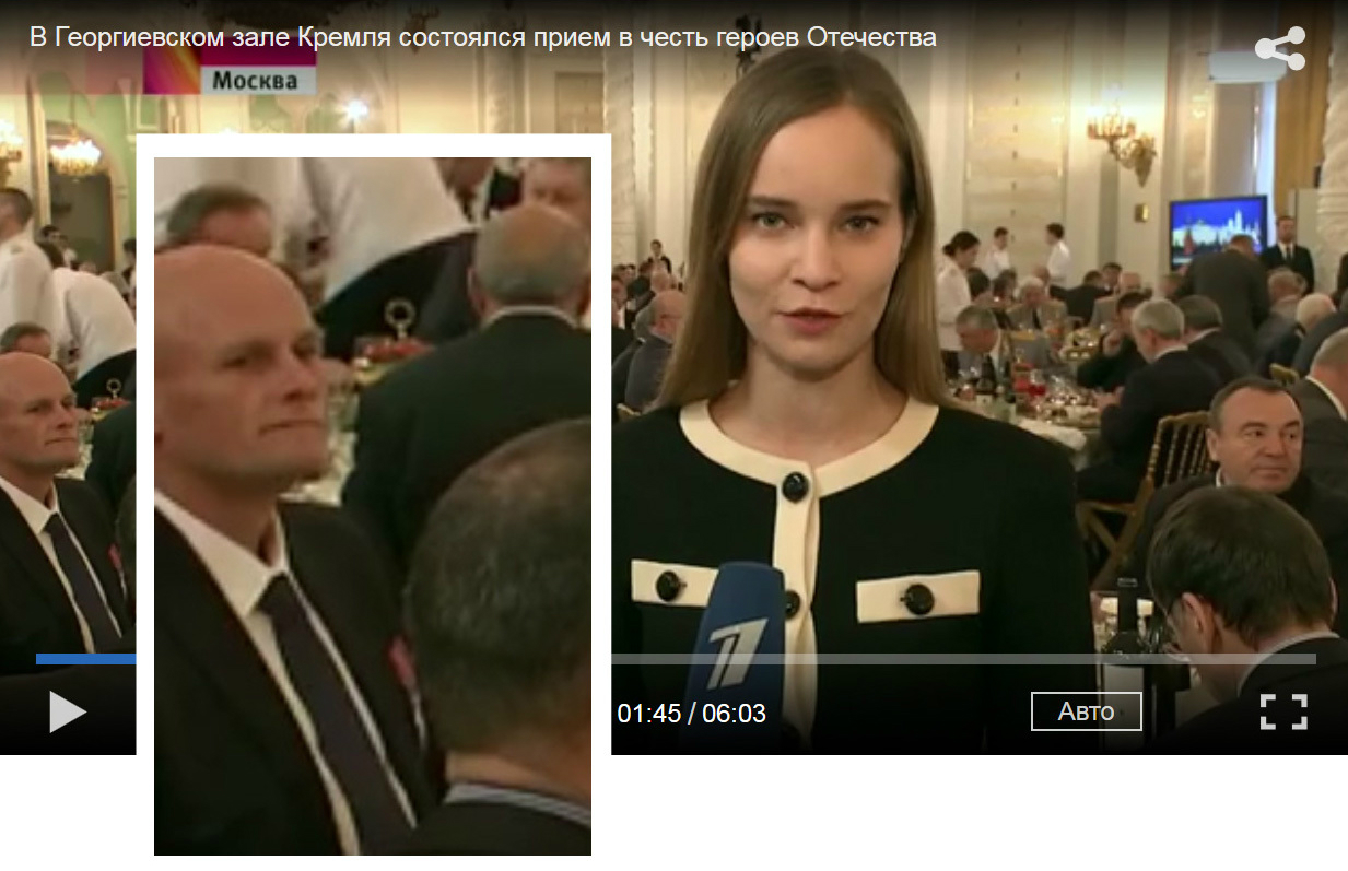 Российские журналисты заметили в сюжете «Первого канала», транслируующих прием в Кремле,  Дмитрия Уткина, больше известного как «Вагнер» и являющегося командиром одноименной частной военной компании (ЧВК), воевавшей на Донбассе и в Сирии.