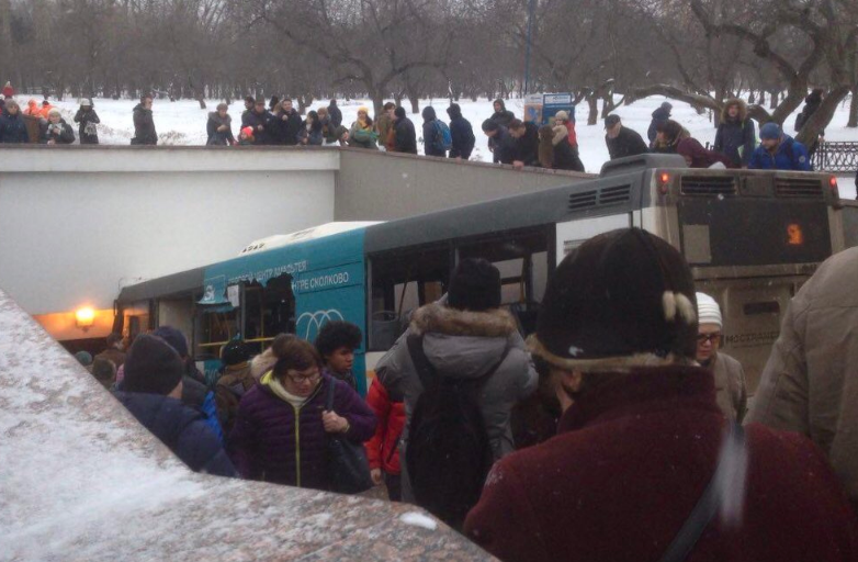 У станции метро Славянский Бульвар автобус въехал в подземный пешеходный переход. pic.twitter.com/JG3RnFKEL8