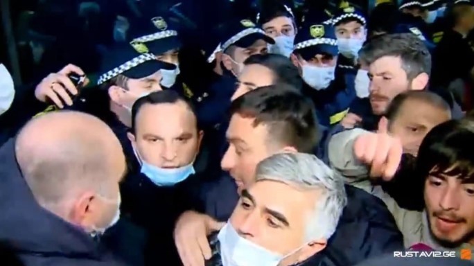 Протестующие также пытались прорваться в отель, однако их остановили правоохранители. Позже начались столкновения активистов с силовиками, а здание отеля забросали яйцами.