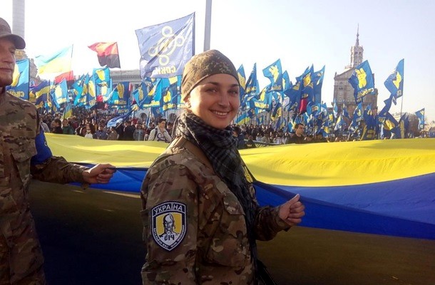 После митинга на Майдане участники марша построились в шеренги на улице Институтской, держа плакаты с надписями: «І на оновленій землі врага не буде супостата», «ОУН-УПА — ми пам’ятаємо, пишаємось, наслідуємо», «ОУН-УПА – державне визнання», «Ми українці — ми на своїй Богом даній землі», «Герої не вмирають», сообщает УНИАН.
