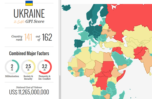 Украина заняла 51 место в Глобальном индексе терроризма и 141 в Глобальном индексе мира
