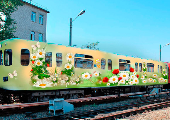 Сам вагон художники украсят снаружи различными цветами: розами, маками, и огромными ромашками, а внутри будут размещены постеры с замечательными словами о женщинах, красоте и любви.