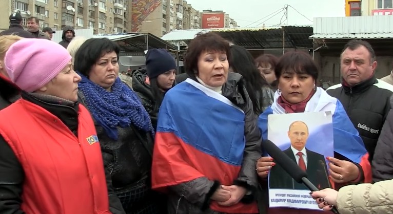 «Когда мы два года назад впереди планеты всей бежали на референдум, я в 08:00 уже в очереди стояла, я думала, что мы бежим от фашизма, от бандеровцев, а получается, что мы прибежали к другим фашистам. Спасите нас, пожалуйста!», — говорит участница акции, обращаясь, по всей вероятности, к российскому «царю».