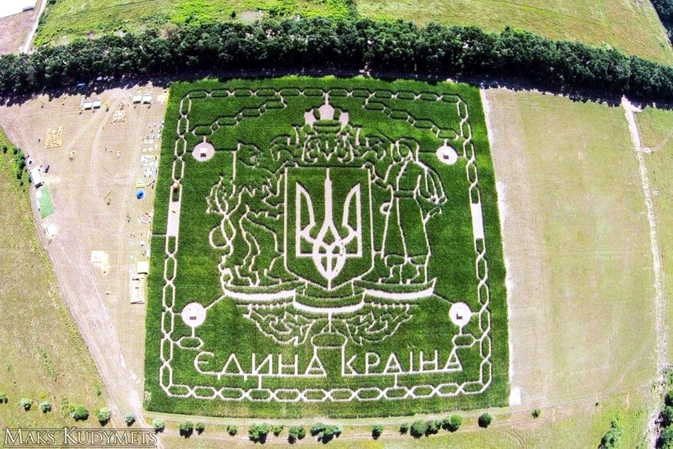 В Украине создали лабиринт из кукурузы в форме герба страны