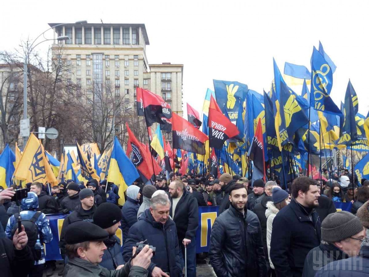 На Марше присутствовали представители «Свободы», «Азова» и «Правого сектора». В их планах было пройти к Верховной Раде, чтобы высказать недовольство «предательскими Минскими соглашениями», потребовать разрыва дипломатических отношений с РФ, запрета на продажу земли и приостановки сотрудничества с МВФ.