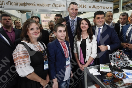 Виталий Кличко и Владимир Гройсман осмотрели ряд стендов, где им представили разработки и продукцию киевских предприятий.