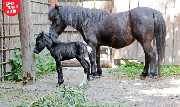 В Киевском зоопарке родился черный шетлендский пони с белым хвостом, которого назвали в честь элитного немецкого автомобиля — Майбах.