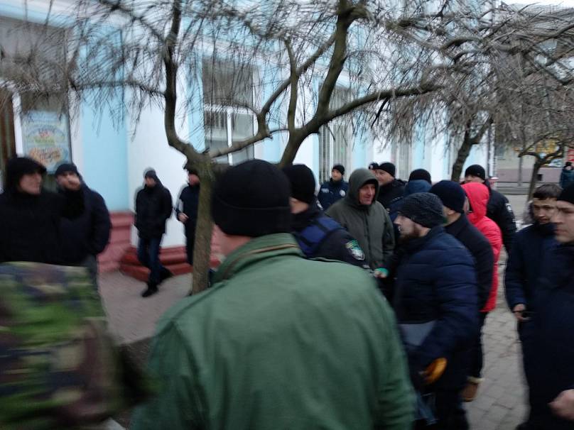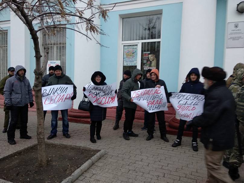 В Бердянске местные активисты организовали возле дома культуры «Софит» акцию протеста против приезда народного депутата от «Оппозиционного блока», кандидата в президенты Украины Александра Вилкула.