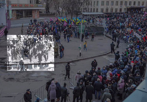 При этом их не смутило то, что на представленном ими фото запечатлено светлое время суток, а на видео с митинга Порошенко, размещенном на YouTube-канале «Страны.ua», выступление украинского президента заканчивается, когда наступают сумерки.