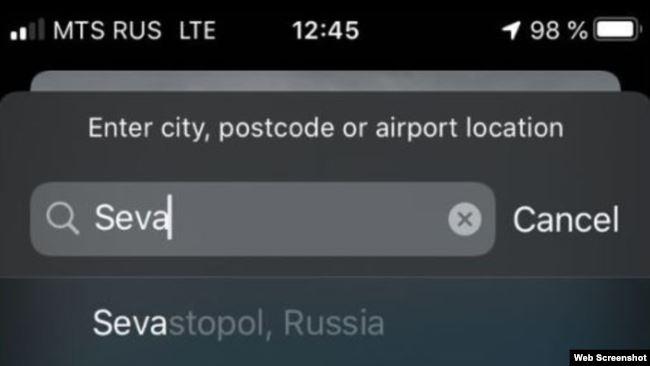 Он также продемонстрировал фотографии, которые свидетельствуют, что в сервисе Apple Севастополь, Симферополь, Ялта и другие города аннексированного Крыма теперь указаны как территория Российской Федерации.