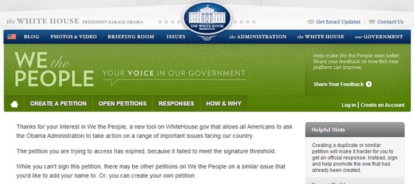 Для рассмотрения петиции администрацией Белого дома необходимо было собрать как минимум 100 тысяч подписей в течение одного месяца месяца с момента ее опубликования.
