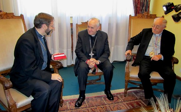 Патриарх УГКЦ Станислав (слева) и кардинал Бергольо, нынешний папа Франциск I (в центре) во время встречи в Аргентине.