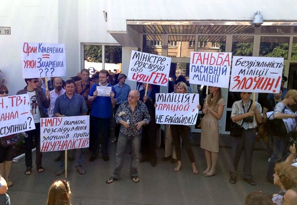 В руках работники СМИ держали плакаты «Министр, расследуй или уходи!» и «Позор пассивной милиции!», передает УНИАН.