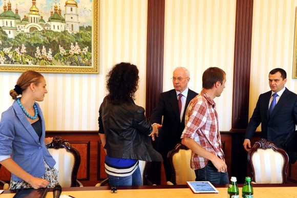 Вместе с тем премьер выразил свое недовольство проведениям акции журналистов во время заседания правительства: «Вы же не Femen». И добавил, что при повторении ситуации он будет вынужден все таки лишить их аккредитации на заседания Кабмина.