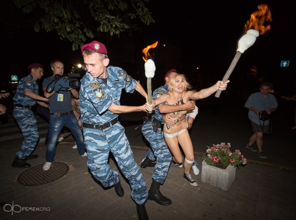 В пресс-службе подчеркнули, что «женское движение Femen борется за низвержение последнего диктатора Европы Лукашенко, за свободную Беларусь без диктатуры, тюрем и убийств». А также презирает президента Украины Виктора Януковича за «дружбу с отбросам цивилизации и пренебрежением европейским курсом для Украины».