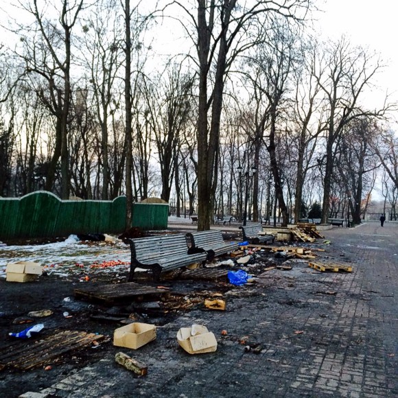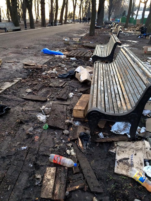 Ранее сообщалось, что активисты Евромайдана убрали мусор в Мариинском парке Киева, оставшийся после сторонников Виктора Януковича, которые несколько недель проводили там митинг.