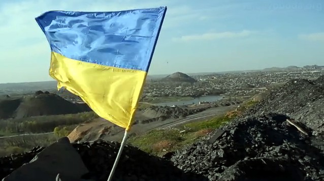 В пятницу, 18 апреля сторонники единой и неделимой Украины водрузили национальный флаг страны на одном из терриконов в центре Донецка.