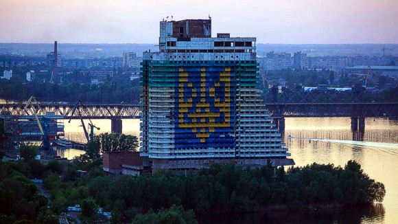 В Днепропетровске утром в воскресенье, 4 мая, появился герб Украины высотой в 16 этажей.