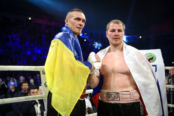 Александр Усик и Андрей Князев после боя.