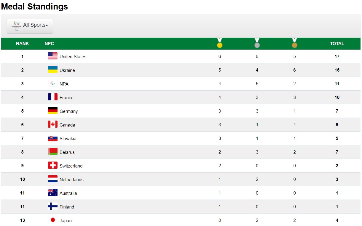 В итоге, на сегодняшний день в копилке украинской сборной 15 медалей Паралимпиады-2018 — 5 золотых, 4 серебряные и 6 бронзовых.