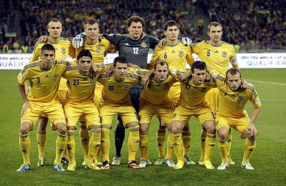 Сборная команда Украины перед началом матча. Киев, 10 сентября 2013.