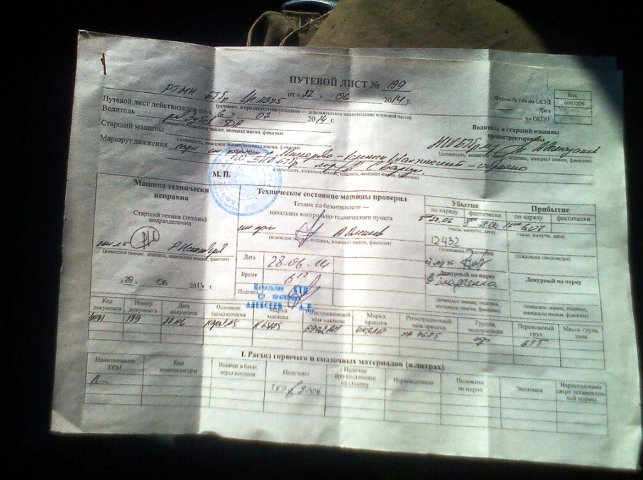 Боец даже выложил фото путевого листа: