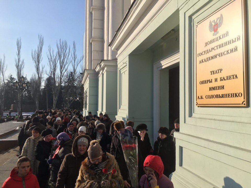 Сепаратистские издания также пишут, что у здания театра собрались тысячи людей, образовавших очередь вдоль центральной улицы Артема, как в мавзолей Ленина.
