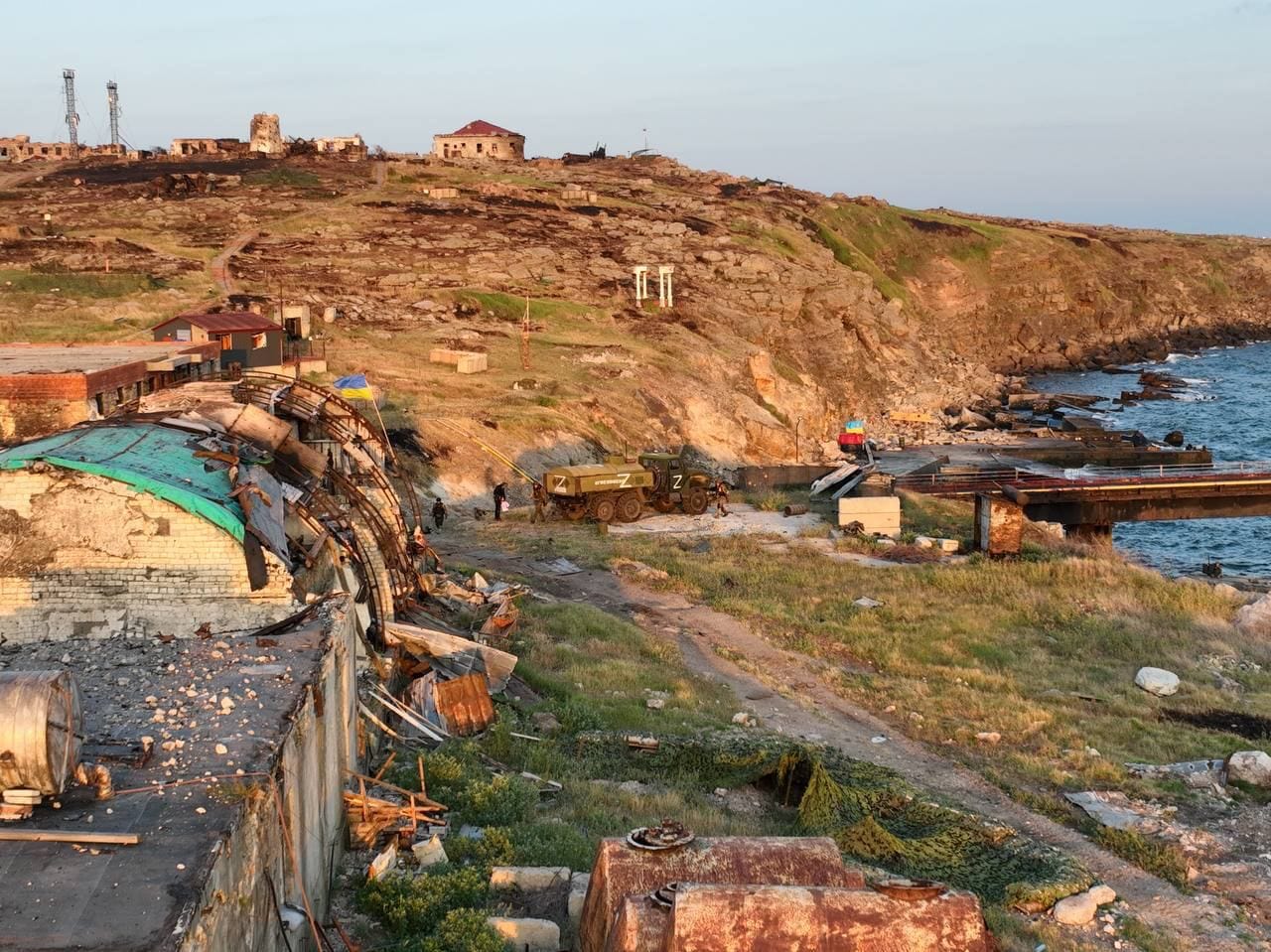 «Как символ Победы и возрождения из руин, украинские военные установили и закрепили флаг Украины, который был доставлен на остров ранее», — говорится в сообщении.