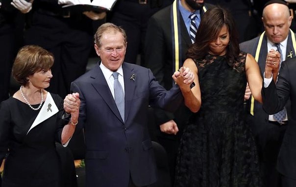 Экс-президент США Джордж Буш-младший на панихиде по погибшим полицейским в Далласе принялся танцевать во время исполнения «Боевого гимна республики».