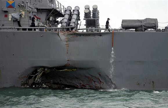 В то же время, в ВМС США утверждают, что ракетный эсминец USS John S McCain также имеет значительные повреждения корпуса. Об этом в Twitter сообщает The Associated Press.